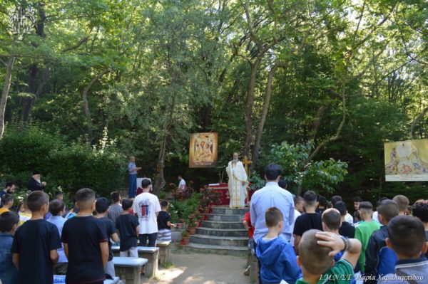 Την Κατασκήνωση της Μητρόπολης «Ευλογημένο Καταφύγιο» στο βουνό Μπέλλες, στη Μακρυνίτσα Σερρών επισκέφτηκε ο Σεβασμιώτατος Μητροπολίτης Νεαπόλεως και Σταυρουπόλεως κ. Βαρνάβας την Κυριακή 7 Ιουλίου 2024 και χοροστάτησε στη Θεία Λειτουργία, η οποία τελέστηκε στον υπαίθριο Ιερό Ναό μέσα στο δάσος.