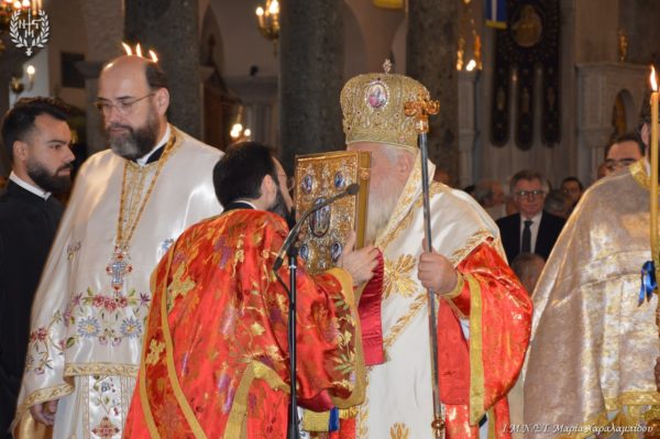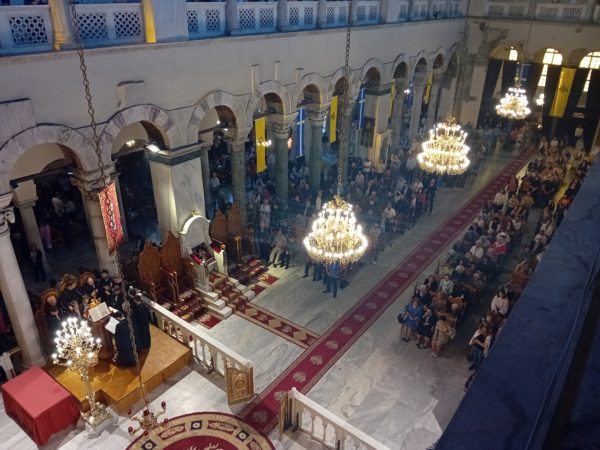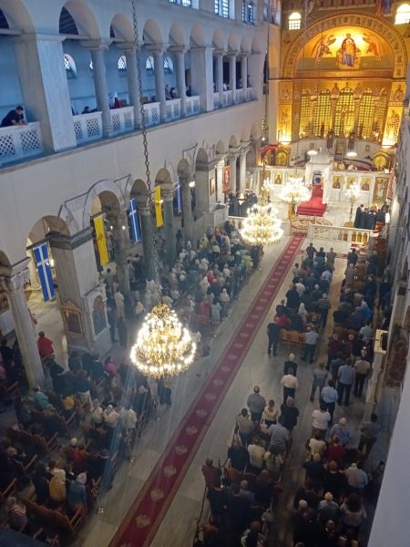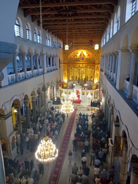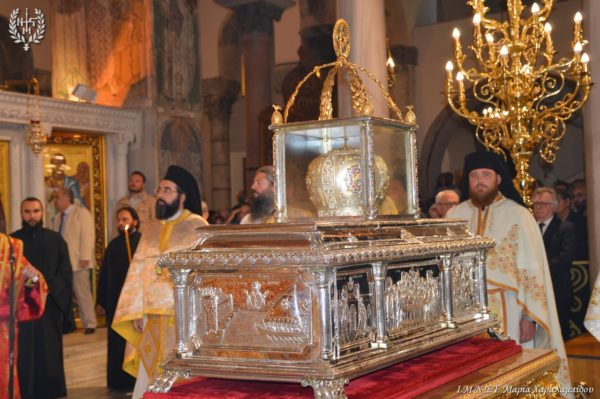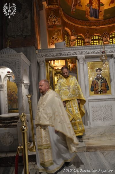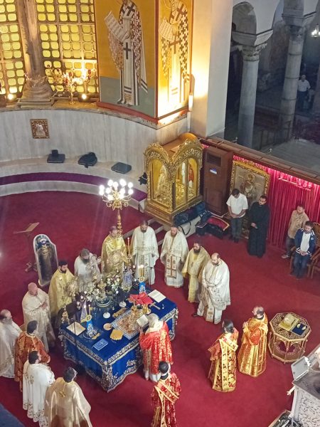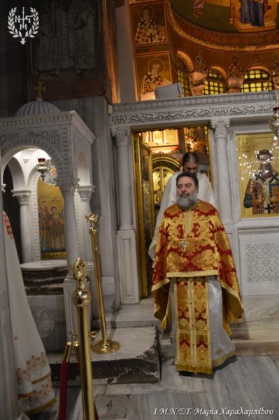 Ιδιαιτέρως συγκινητική υπήρξε η στιγμή κατά την οποία, μετά το πέρας της Θείας Λειτουργίας, η Ιερά λάρνακα του Αγίου Δημητρίου μεταφέρθηκε στο σολέα σηματοδοτώντας, κατ’ αυτόν τον τρόπο, την έναρξη της Λατρευτικής Εβδομάδας του εορτασμού του Μεγαλομάρτυρος και Πολιούχου Αγίου Δημητρίου του Θεσσαλονικέως.