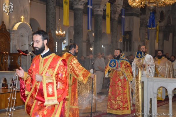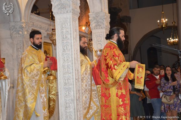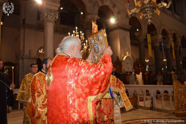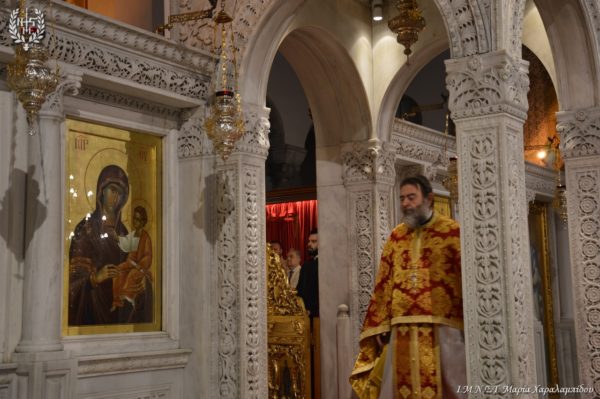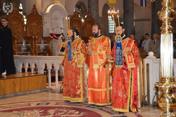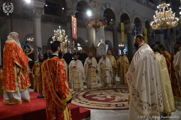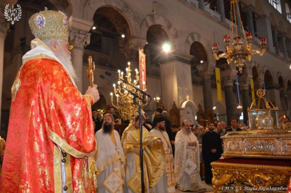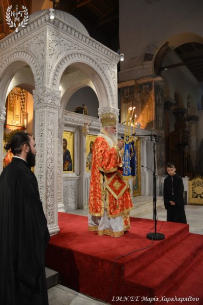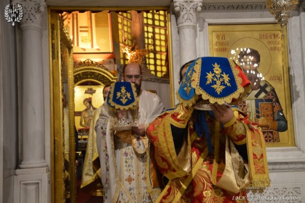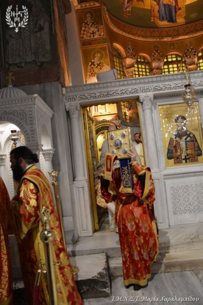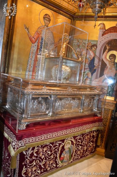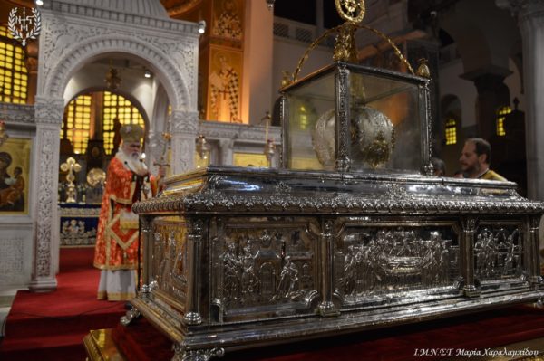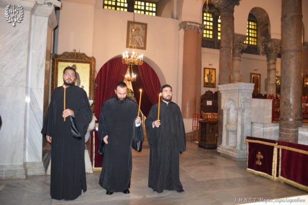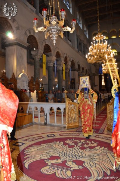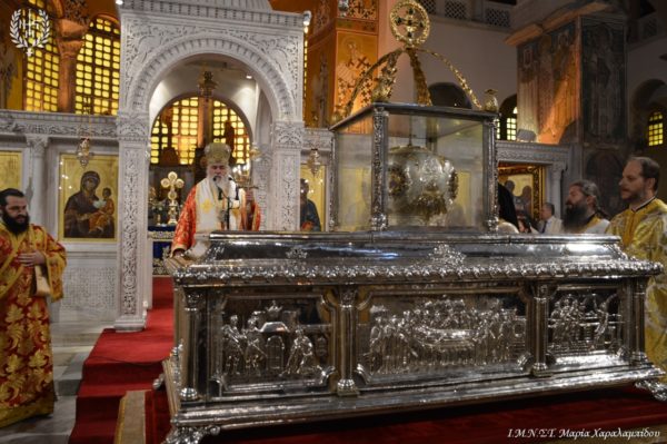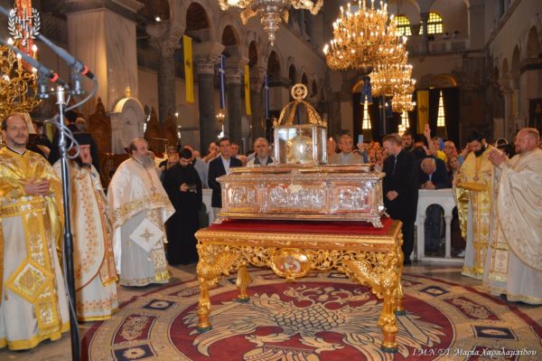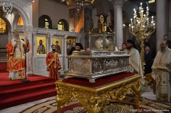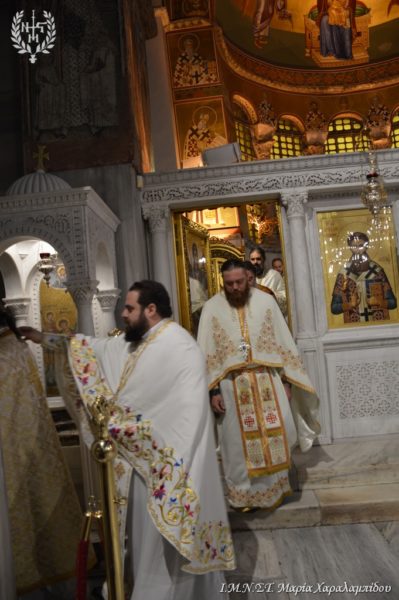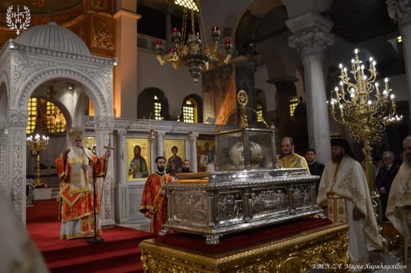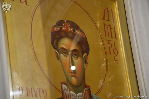 Ιδιαιτέρως συγκινητική υπήρξε η στιγμή κατά την οποία, μετά το πέρας της Θείας Λειτουργίας, η Ιερά λάρνακα του Αγίου Δημητρίου μεταφέρθηκε στο σολέα σηματοδοτώντας, κατ’ αυτόν τον τρόπο, την έναρξη της Λατρευτικής Εβδομάδας του εορτασμού του Μεγαλομάρτυρος και Πολιούχου Αγίου Δημητρίου του Θεσσαλονικέως.