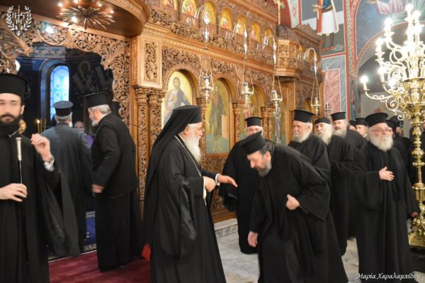Μετά το πέρας του Εσπερινού, κατά την παράδοση της Εκκλησίας οι κληρικοί της Μητροπόλεως ζήτησαν την ευχή του Σεβασμιωτάτου για τη Σαρακοστή.