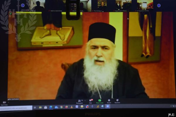 Στο τέλος, μετά τις εισηγήσεις της επιστήμης, ο π.Βασίλειος Καλλιακμάνης πρόβαλε το ρόλο της Εκκλησίας στην περίοδο της δοκιμασίας από την ασθένεια του covid 19.