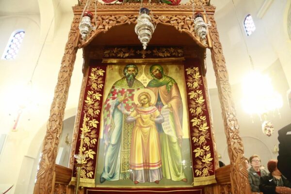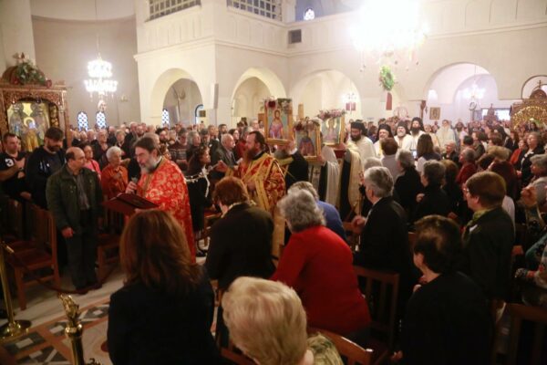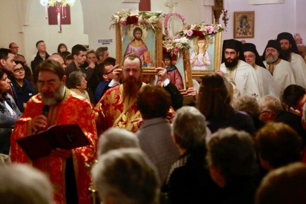 Πανηγυρικός Αρχιερατικός Εσπερινός τελέστηκε στον πανηγυρίζοντα Ιερό Ναό των Αγίων Ραφαήλ, Νικολάου και Ειρήνης στα Μετέωρα Θεσσαλονίκης τη Δευτέρα 29 Απριλίου 2019. Στην ακολουθία του εσπερινού χοροστάτησε ο Σεβασμιώτατος Μητροπολίτης Νέας Κρήνης και Καλαμαριάς κ. Ιουστίνος, προσκεκλημενος του Σεβ Μητροπολίτου Νεαπολεως κ. Βαρνάβα. Πλήθος κόσμου , μικροί και μεγάλοι προσέτρεξαν με ευλάβεια να προσκυνήσουν τα ιερα λείψανα που φυλάσσονται στο νεόδμητο Ιερό Ναό. Τη διακονία του λόγου ανέλαβε ο Σεβ. Νέας Κρήνης και Καλαμαριάς κ. Ιουστίνος. Από την μεριά του ο οικείος ποιμενάρχης ευχαρίστησε τον Σεβ. Μητρ. Νέας Κρήνης κ. Ιουστίνο που παρόλο τον κόπο των ημερών ανταποκρίθηκε στην πρόσκληση και παρευρέθηκε και χοροστάτησε στον Εσπερινό. Επίσης παρευρέθηκε στον Ι. Ν. ο δήμαρχος Παύλου Μελλά, κ.Δεμουρτζίδης Δημήτριος. Πριν την έναρξη του Πανηγυρικού Εσπερινού πραγματοποιήθηκε λιτανεία της Ιεράς Εικόνος των Νεοφανών Αγίων.