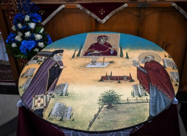Την Ιερά και Αγία Εικόνα υποδέχθηκε ο Σεβασμιώτατος Μητροπολίτης Νεαπόλεως κ.Βαρνάβας, ο οποίος ευχαρίστησε τον Καθηγούμενο της Ιεράς Μεγίστης Μονής Βατοπαιδίου.