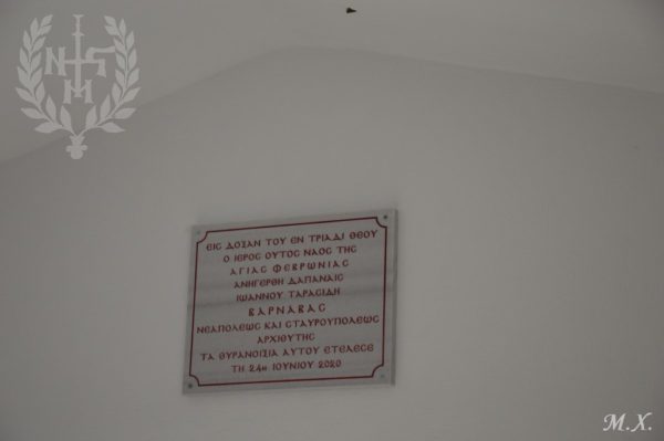 Ο Σεβασμιώτατος μνημόνευσε επίσης με ευγνωμοσύνη την προσφορά του κ. Ιωάννη Ταρασίδη ο οποίος είναι ο δωρητής του ιερού Παρεκκλησίου.