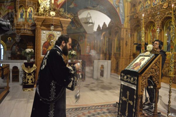 Στην άδεια Εκκλησιά, με την νοερή παρουσία των αγίων και τη συμμετοχή του π. Νικηφόρου και του π. Γεωργίου και ενώ ο π. Αντώνιος ηδύμολπα και ικετευτικά απέδιδε την Παράκληση, ο Σεβασμιώτατος, μεσίτης μεταξύ Θεού και ανθρώπων, ζήτησε την απομάκρυνση της ασθένειας και την «κολόβωση» των ημερών του πειρασμού.
