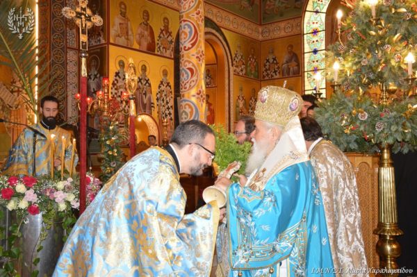 Στον Ιερό Ναό Ευαγγελισμού της Θεοτόκου ιερούργησε την Κυριακή 5 Ιανουαρίου 2025 ο Σεβασμιώτατος Μητροπολίτης Νεαπόλεως και Σταυρουπόλεως κ. Βαρνάβας πλαισιούμενος από τους πατέρες του Ναού.