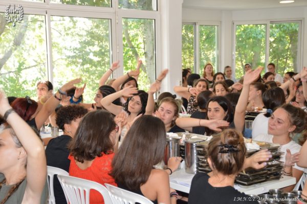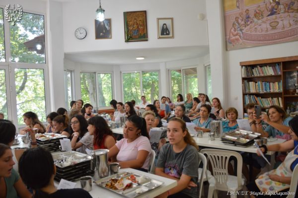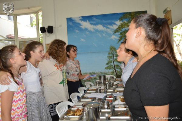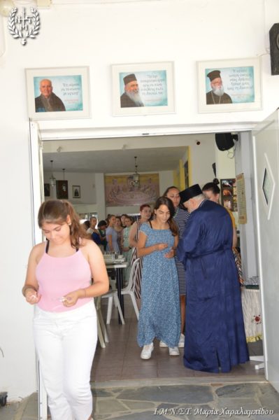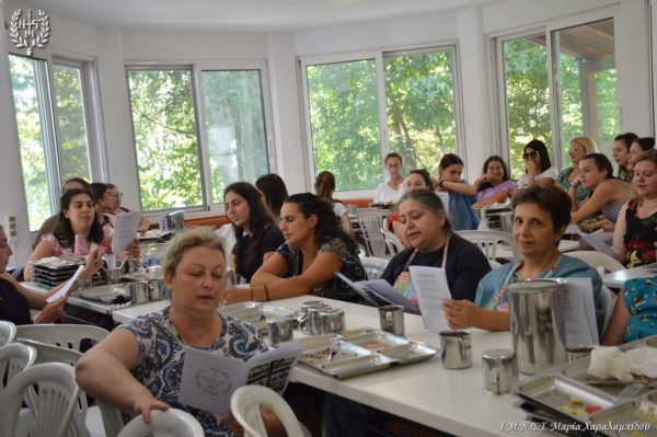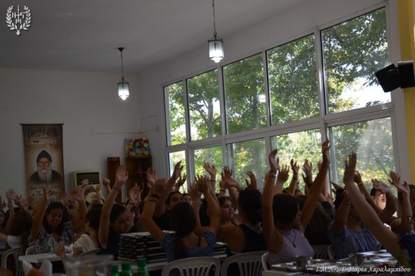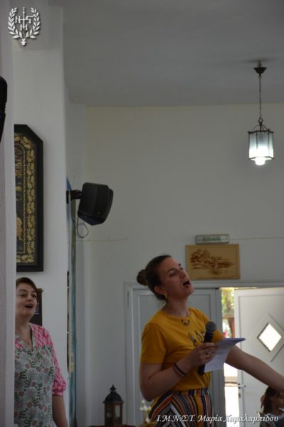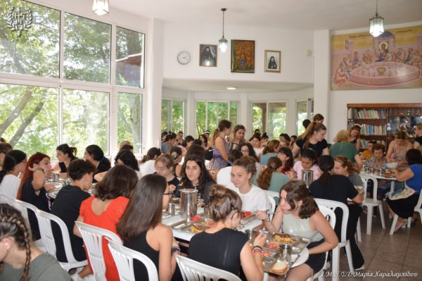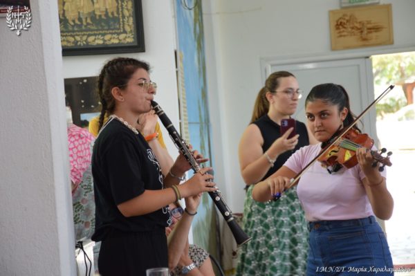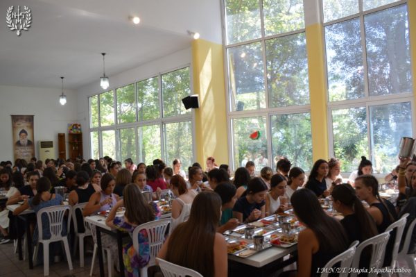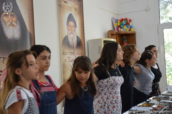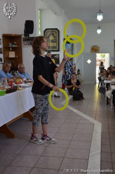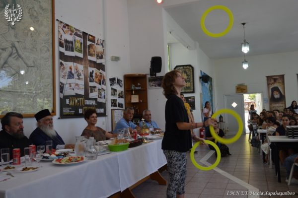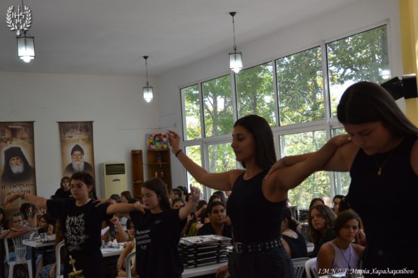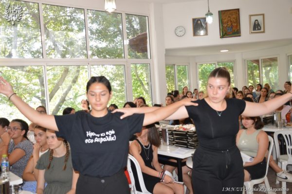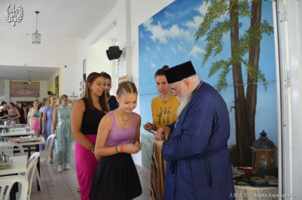 Οι 200 κατασκηνώτριες Γυμνασίου και Λυκείου υποδέχθηκαν το Σεβασμιώτατο και τη συνοδεία του με έκδηλη χαρά και παρουσίασαν ένα όμορφο πρόγραμμα με τραγούδια, χορό, με ταχυδακτυλουργικά και κωμικές παντομίμες.