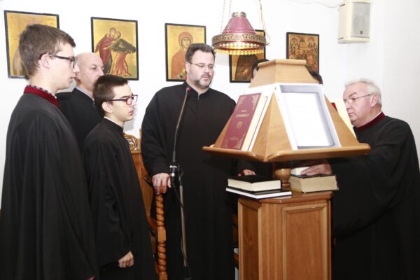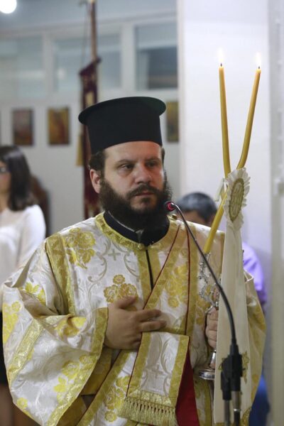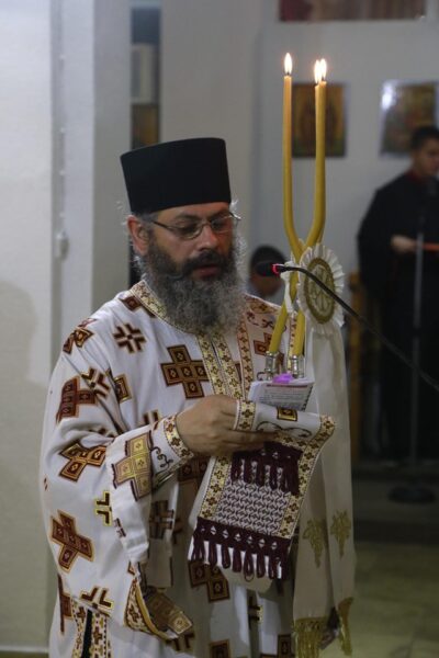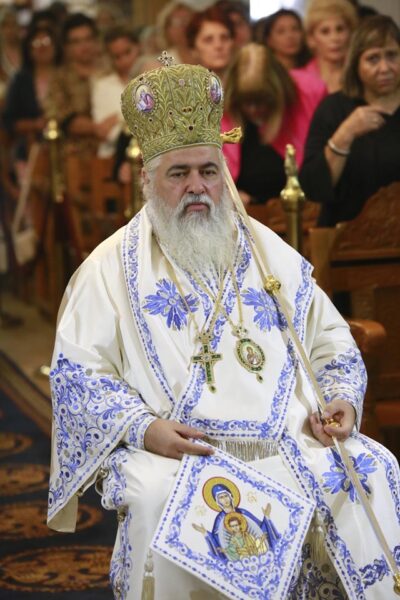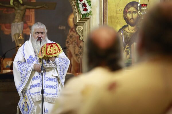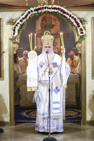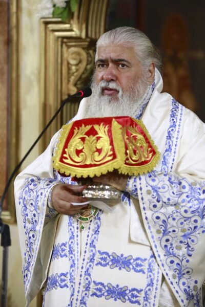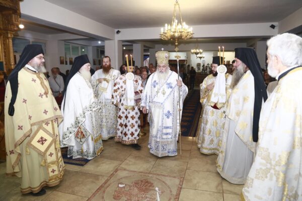 Της ακολουθίας του Όρθρου και της Θείας Λειτουργίας προεξήρχε ο οικείος ποιμενάρχης Σεβασμιώτατος Μητροπολίτης Νεαπόλεως και Σταυρουπόλεως κ. Βαρνάβας, πλαισιούμενος από τον Καθηγούμενο της Ιεράς Μεγίστης Μονής Βατοπαιδίου Γέροντα Εφραίμ, ιερείς και διακόνους της Ιεράς Μητροπόλεως.