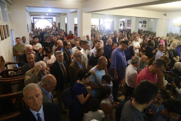 Πλήθος κόσμου από τις πρωινές ώρες έχει κατακλύσει τον ιερό ναό για να προσευχηθεί στην Παναγία την Εσφαγμένη η οποία θα βρίσκεται πλέον μόνιμα στον Ναό.