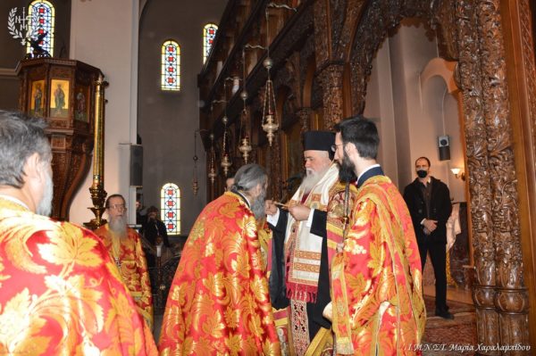 Μετά το πέρας της θείας λειτουργίας, ο Σεβασμιώτατος, αφού προέβη στην εις πρωτοπρεσβύτερο χειροθεσία του π.Γεωργίου Σαρησάββα δέχθηκε στο Επισκοπείο τα πνευματικά του παιδιά, τα οποία έσπευσαν να υποβάλουν τα σέβη τους και να εκζητήσουν την ευχή του Ποιμενάρχη τους για τη νέα χρονιά.