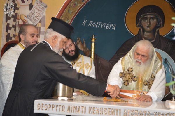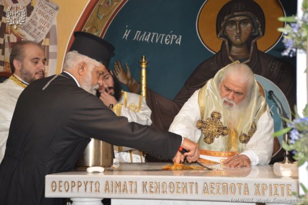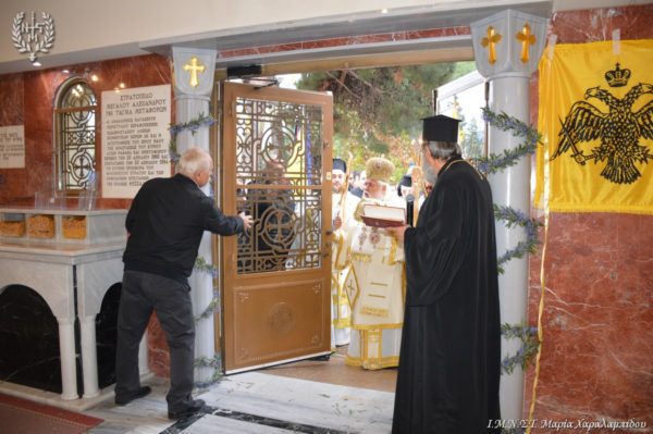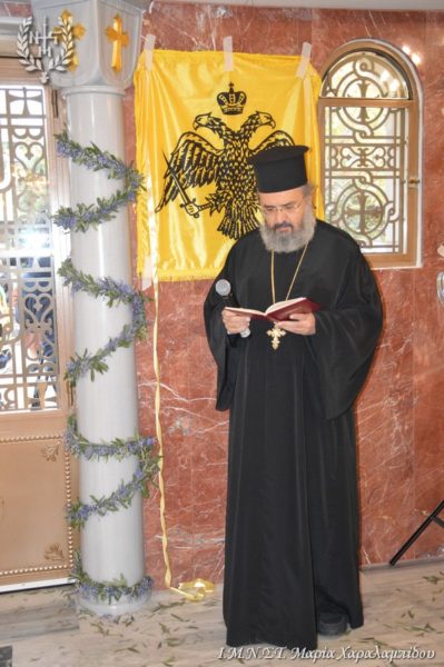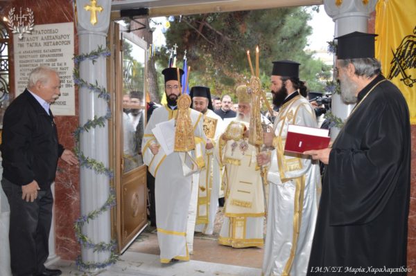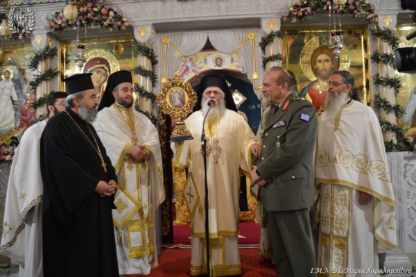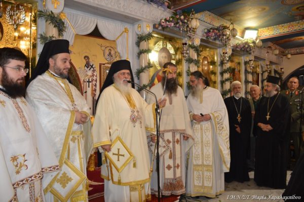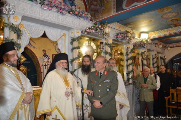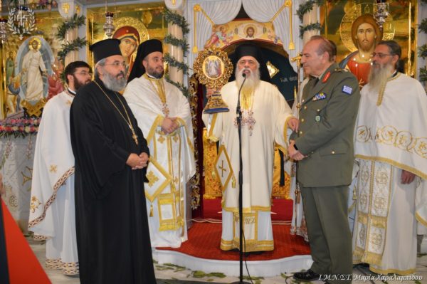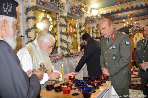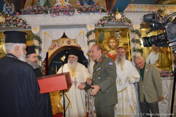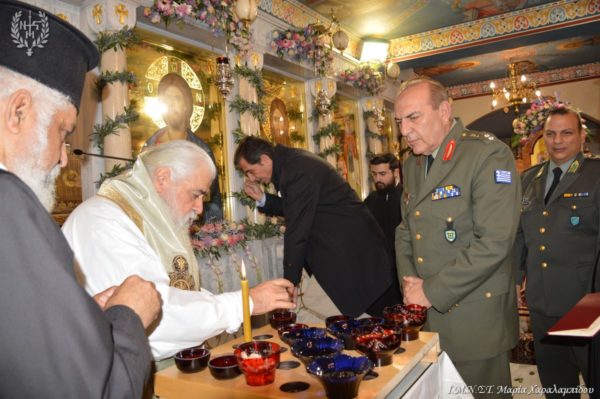 Ο Σεβασμιώτατος κ. Βαρνάβας ευχαρίστησε τον Υποστράτηγο κ. Κεσόπουλο, τον Στρατηγό κ. Σιδηρόπουλο και τον κ. Νερούλη ως εκπροσώπους των Ενόπλων Δυνάμεων για την οικοδόμηση του Ναού εντός του Στρατοπέδου.