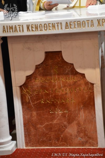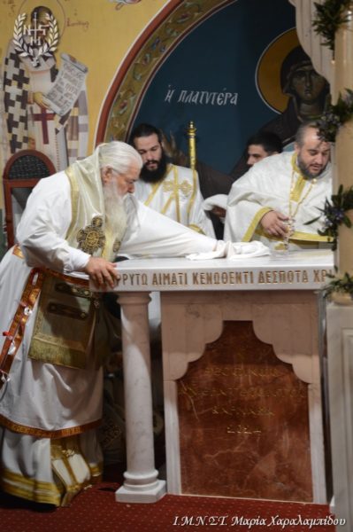 Ο Πρωτοπρεσβύτερος π. Νικηφόρος Καλαϊτζίδης με σαφήνεια και γλαφυρότητα περιέγραψε τις φάσεις του εγκαινιασμού της Ιεράς Τραπέζης ερμηνεύοντας και αποκωδικοποιώντας στο πολυπληθές εκκλησίασμα τους ιερούς συμβολισμούς.