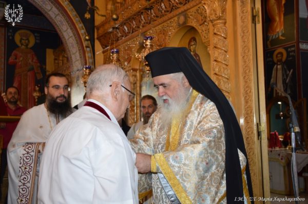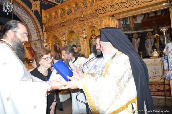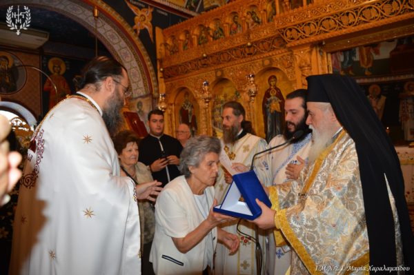 Μετά το πέρας της θείας Λειτουργίας, ο Σεβασμιώτατος προέβη στη βράβευση 24 κυριών της Ενορίας για την επί σειρά ετών θυσιαστική διακονία τους στο Συσσίτιο του Ναού το οποίο, ας σημειωθεί, καταγράφεται ως το αρχαιότερο της πόλης.