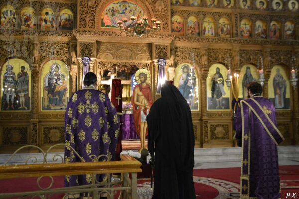 Στον Ιερό Ναό των Αγίων Θεοδώρων και Αγίας Αναστασίας Φαρμακολυτρίας στις Συκιές τελέστηκε η Ακολουθία του Νυμφίου τη Μεγάλη Τρίτη, 14 Απριλίου 2020, το απόγευμα όπου χοροστάτησε ο Σεβασμιώτατος Μητροπολίτης Νεαπόλεως και Σταυρουπόλεως κ. Βαρνάβας και ακούστηκε το τροπάριο της Αγίας Κασσιανής.