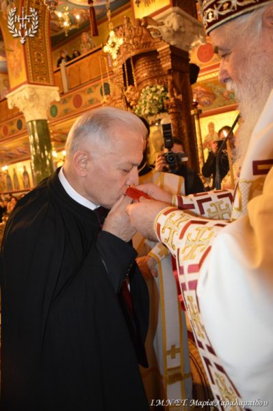 Μετά το πέρας της Θείας Λειτουργίας ο Σεβασμιώτατος χειροθέτησε σε Άρχοντα Λαοσυνάκτη της Μεγάλης του Χριστού Εκκλησίας το Δήμαρχο και Πρόεδρο της Περιφερειακής Ένωσης Δήμων Κεντρικής Μακεδονίας κ. Λάζαρο Κυρίζογλου.