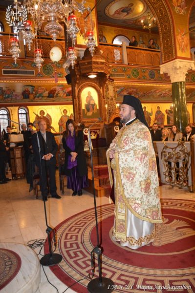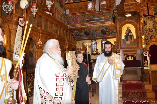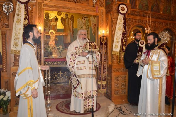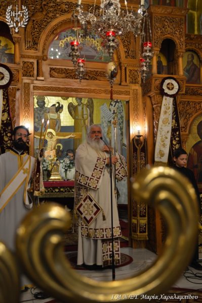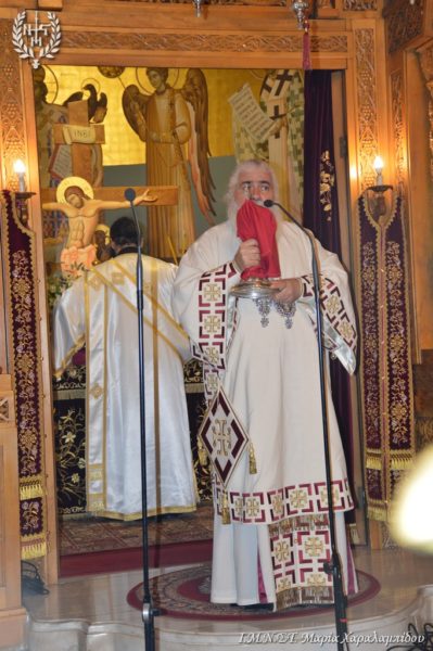 Ο Σεβασμιώτατος πλαισιώθηκε από τον Πανοσιολογιώτατο Αρχιμανδρίτη π. Παντελεήμονα Αναστασιάδη, τον π. Νικηφόρο Καλαϊτζίδη, τον π. Βασίλειο Κούτλα και τους Διακόνους π. Δημήτριο Κυριάκου και π. Ελευθέριο Αμισηνόπουλο.