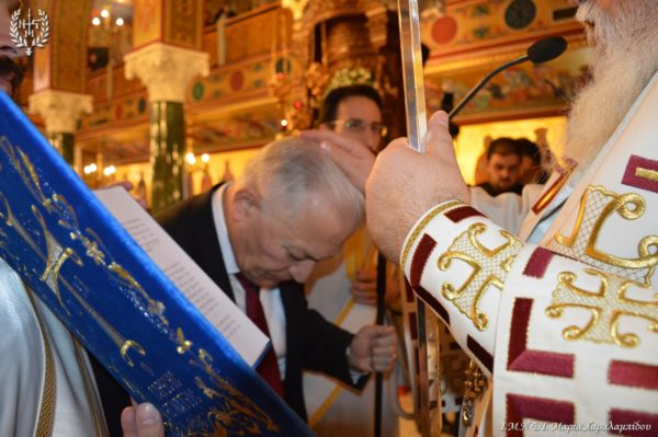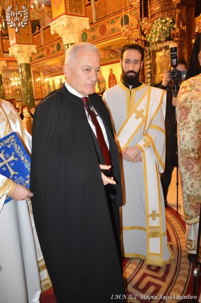 Μετά το πέρας της Θείας Λειτουργίας ο Σεβασμιώτατος χειροθέτησε σε Άρχοντα Λαοσυνάκτη της Μεγάλης του Χριστού Εκκλησίας το Δήμαρχο και Πρόεδρο της Περιφερειακής Ένωσης Δήμων Κεντρικής Μακεδονίας κ. Λάζαρο Κυρίζογλου.