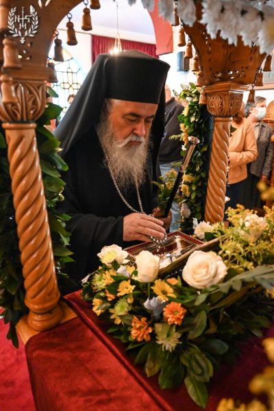 Στο τέλος, ο Σεβασμιώτατος Μητροπολίτης Νεαπόλεως και Σταυρουπόλεως κ. Βαρνάβας ευχαρίστησε το εκκλησίασμα για την πάνδημη συμμετοχή του στις ακολουθίες της Ιεράς Πανηγύρεως.