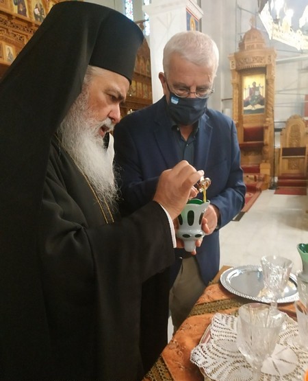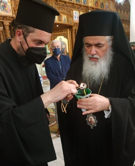 Στο τέλος της Θείας Λειτουργίας, ο Σεβασμιώτατος, αφού τέλεσε το τεσσαρακονθήμερο μνημόσυνο της μακαριστής Σωτηρίας Δέλιου, μητέρας του Προϊσταμένου του Ιερού Ναού π. Νικολάου, και αφού ευχαρίστησε τους πατέρες και τους συνεργάτες του Ιερού Ναού και όλους όσοι βοήθησαν στην άρτια οργάνωση της πανηγύρεως, όπως και τον πιστό λαό του Θεού που κατέκλυσε τον Ιερό Ναό ζητώντας τις πρεσβείες της Κυρίας Θεοτόκου με επικεφαλή τον Δήμαρχο και τις αρχές του τόπου, απένειμε το οφφίκιο του Πρωτοπρεσβυτέρου στον π. Νικόλαο Δέλιο.