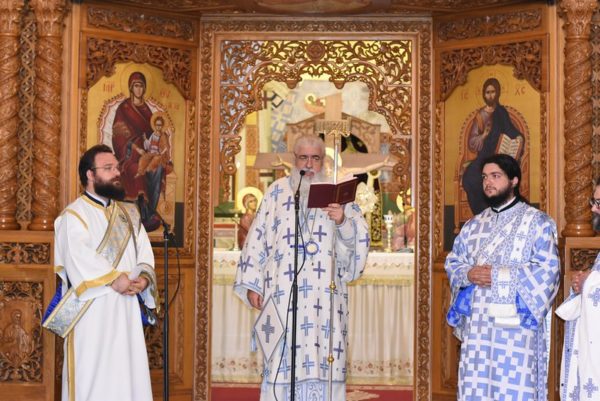 Αμέσως μετά τελέσθηκε ο Πανηγυρικός Αρχιερατικός Εσπερινός, στον οποίο χοροστάτησε ο Σεβασμιώτατος. Στο εμπνευσμένο κήρυγμά του αναφέρθηκε εκτενώς στο πρόσωπο της Παναγίας Μητέρας μας και συγκεκριμένα στο θαύμα της εικόνος του «Άξιον Εστί».
