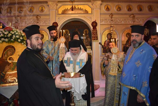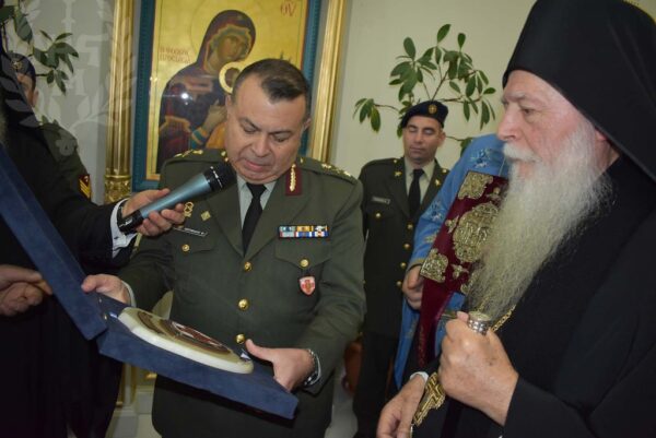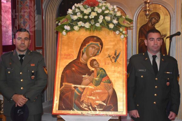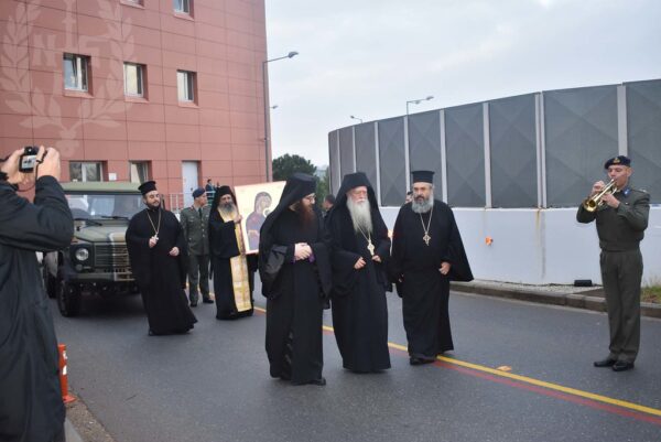 Στο τέλος της ακολουθίας του Όρθρου ο Σεβασμιώτατος, μαζί με τη Διοίκηση του Στρατιωτικού Νοσοκομείου και τον πιστό λαό του Θεού, υποδέχθηκαν αντίγραφο της Ιεράς Εικόνος της Παναγίας, της επικαλουμένης «Φοβεράς Προστασίας» εκ της Ιεράς Μονής Κουτλουμουσίου Αγίου Όρους, στην είσοδο του Ναού. Το ιερό εικόνισμα μετέφερε ο Καθηγούμενος της Ιεράς Μονής Αρχιμανδρίτης Χριστόδουλος και πατέρες της Μονής.