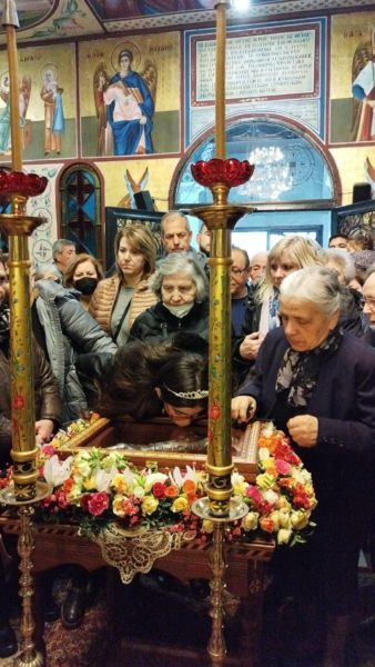 Αμέσως μετά την υποδοχή ακολούθησε ευχέλαιο με την παρουσία του Μητροπολίτου Νεαπόλεως και Σταυρουπόλεως πλαισιούμενος από ιερείς και διακόνους.