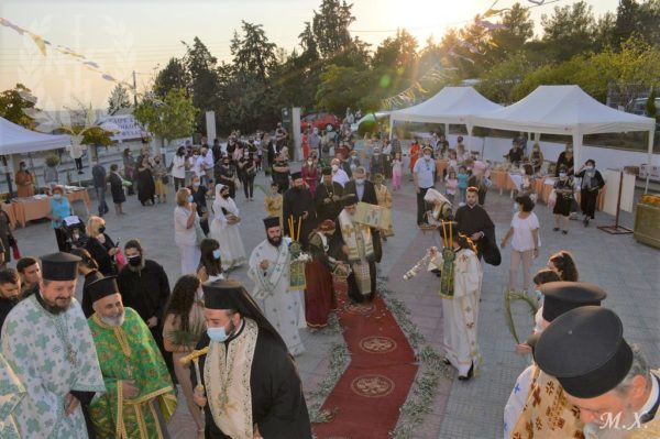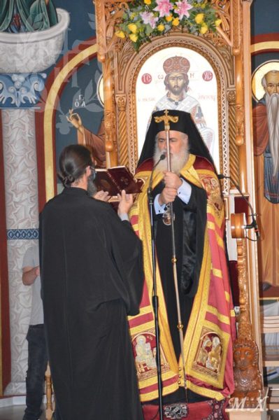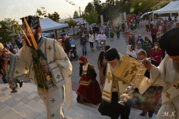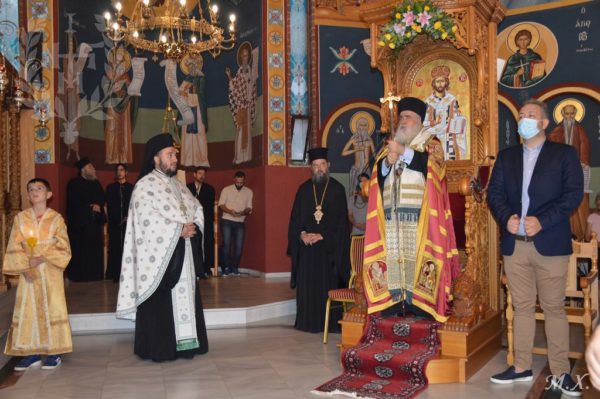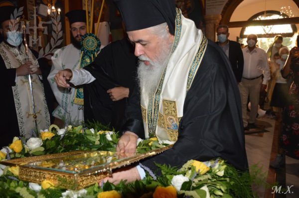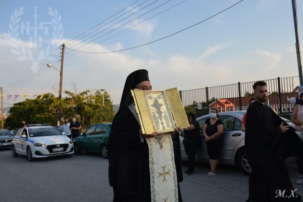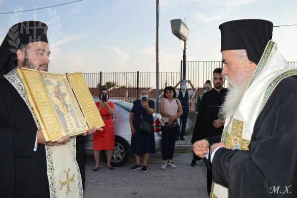 Ο Σεβασμιώτατος κ. Βαρνάβας νωρίτερα υποδέχθηκε τεμάχιο του Τιμίου Σταυρού, το οποίο έθεσε προς προσκύνηση του πιστού λαού.