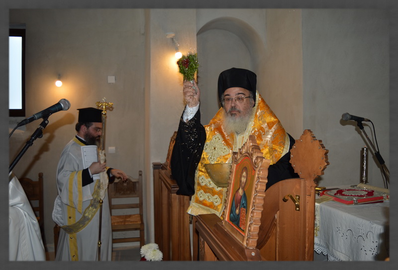 Τά θυρανοίξια τέλεσε ὁ Σεβασμιώτατος Ποιμενάρχης μας κ. Χρυσόστομος, πλαισιούμενος ἀπό ἱερείς τῆς Μητροπόλεως καί ἀκολούθως χοροστάτησε στόν πανηγυρικό ἑσπερινό.