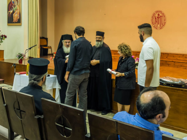 Τόνισε επίσης πως η γνώση του Τυπικού της Εκκλησίας μας και η ευκρινής ανάγνωση παίζουν πρωτεύοντα ρόλο στην ιεροψαλτική διακονία. Τέλος ευχαρίστησε τον Διευθυντή της Σχολής Αρχιμ. Χαρίτωνα Μιχαήλ, τον Διευθυντή της χορωδίας της Μητροπόλεώς μας «Chorus Nicopolitanus» και Καθηγητή της Σχολής κ. Μιχαήλ Ζάμπα, Πρωτοψάλτη του Ιερού Ναού Αγίας Ειρήνης οδού Αιόλου της Ιεράς Αρχιεπισκοπής Αθηνών, τον κ. Γεώργιο Αλεφραγκή, που διδάσκει στο πρακτικό τμήμα της Σχολής, καθώς και όλους τους σπουδαστές και τις σπουδάστριες.