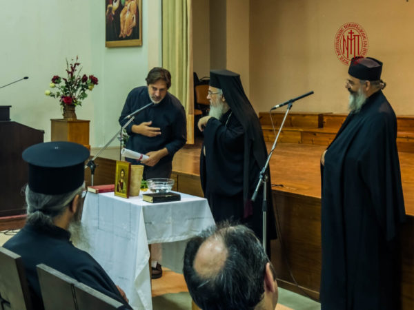Εν συνεχεία έλαβε τον λόγο ο Διευθυντής της Σχολής π. Χαρίτων, ο οποίος μεταξύ άλλων τόνισε ότι η Βυζαντινή Μουσική είναι λατρευτική και ότι ο φυσικός χώρος της είναι ο Ιερός Ναός, επισημαίνων ότι χαρακτηρίζεται και ως μουσική των αγγέλων, εκφράζοντας όμως τον άνθρωπο ως ψυχοσωματική οντότητα.