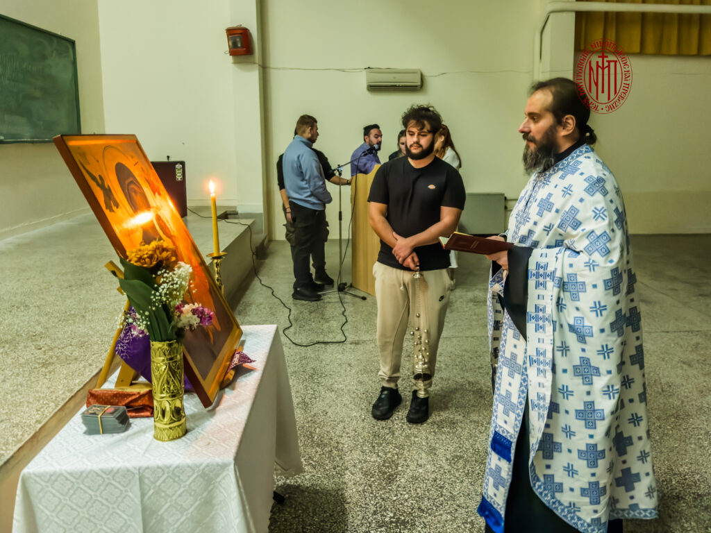 Μέσα σε κλίμα κατάνυξης και πνευματικής συγκίνησης τελέσθηκε το βράδυ της Δευτέρας, στην Ακαδημία Εμπορικού Ναυτικού (Α.Ε.Ν.) η Ακολουθία των Χαιρετισμών προς την Υπεραγία Θεοτόκο, με την ευλογία και την πατρική παρουσία του Σεβασμιωτάτου Mητροπολίτου Νικοπόλεως και Πρεβέζης κ. Χρυσοστόμου.