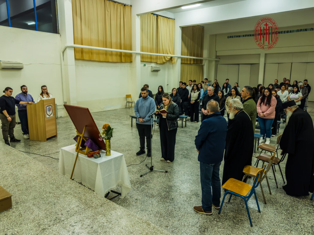 Στο τέλος της ακολουθίας ο Σεβασμιώτατος απηύθυνε πατρικό λόγο προς τους καθηγητές και τους φοιτητές της Ακαδημίας, αναλύοντας θεολογικά το νόημα των Χαιρετισμών της Θεοτόκου. Αναφέρθηκε στη δύναμη της προσευχής προς την Παναγία, η οποία στέκεται ακοίμητη μεσίτρια προς τον Υιό της, χαρίζοντας στον καθένα από εμάς αυτό που χρειαζόμαστε για την πνευματική μας ωφέλεια και σωτηρία. Κατακλείοντας ευχήθηκε πατρικά καλή συνέχεια στον πνευματικό αγώνα της Σαρακοστής και ευλογημένη Ανάσταση, γεμάτη φως, ελπίδα και χαρά.
