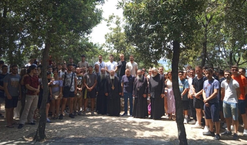 Το μεσημέρι λίγο πριν το μεσημεριανό φαγητό επισκέφθηκε την ωραία παρέα των εκδρομέων ο Σεβασμιώτατος και συνομίλησε μαζί τους, απευθύνοντάς τους λόγους πατρικούς, ώστε να απαντήσουν στις νεανικές τους αναζητήσεις, ενώ κλείνοντας αυτή την σύντομη αλλά εποικοδομητική συνάντηση προσέφερε σε όλους ένα βιβλίο για την πνευματική τους οικοδομή.