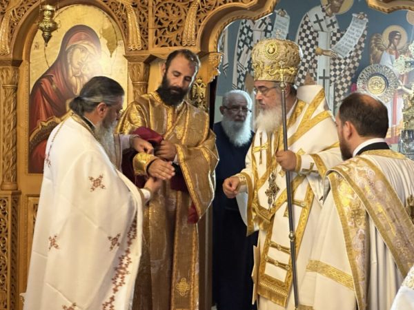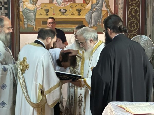 Κατά τη διάρκεια της Θείας Λειτουργίας τέλεσε την εις διάκονον χειροτονία του εγγάμου κ. Ηλία Χήτα, καταγομένου από το χωρίο Άγιος Σπυρίδων Άρτης, προσφωνήσας αυτόν κατάλληλα, χρησιμοποιώντας λόγους του Πατροκοσμά που αναφέρονται στην Ιερωσύνη και τον κληρικό.