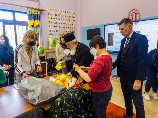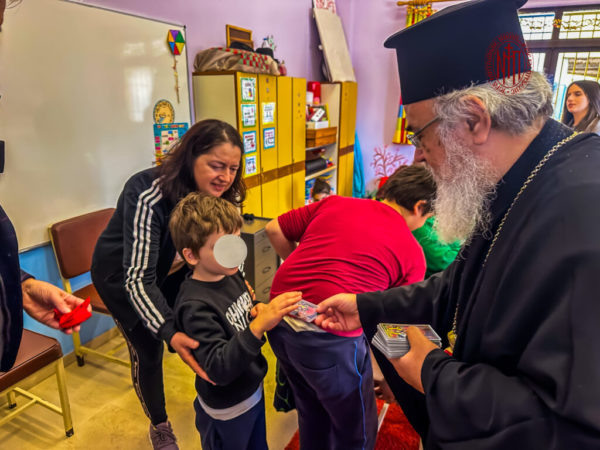 Οι μαθητές παρουσίασαν ένα ευχάριστο πρόγραμμα προς τιμήν του Σεβασμιωτάτου ο οποίος στο τέλος τους μοίρασε δώρα.
