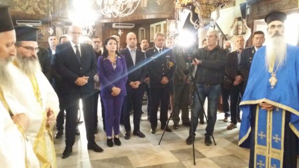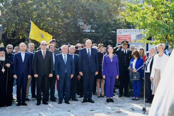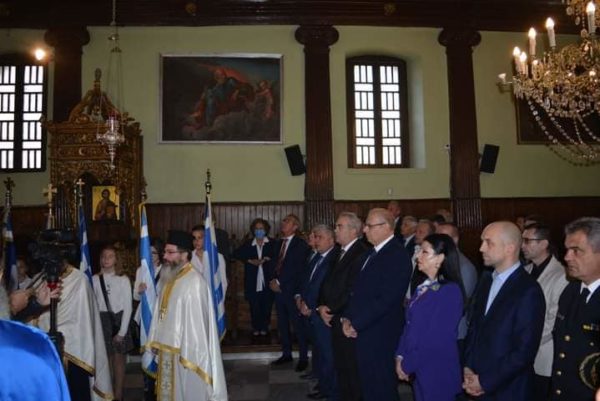 Μετά το πέρας της Θείας Λειτουργίας, ετελέσθη επιμνημόσυνη δέηση από τον Σεβασμιώτατο Μητροπολίτη κ. Χρυσόστομο και ακολούθησε κατάθεση στεφάνων από τις Αρχές και τους Φορείς της πόλης στο Μνημείο Ελευθερίας πλησίον του κάστρου του Αγίου Ανδρέα.
