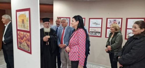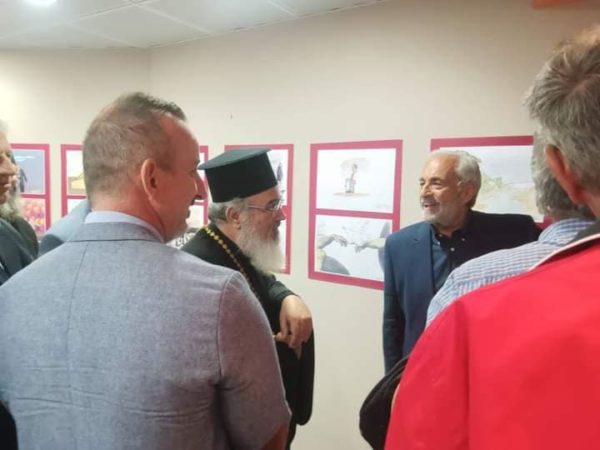 Παράλληλα ο γνωστός σκιτσογράφος Γρηγόρης Γεωργίου ξενάγησε τους παρευρισκομένους στην έκθεση γελοιογραφίας με σκίτσα που αποτυπώνουν τα δεινά, τις δύσκολες στιγμές, την ελπίδα, τα συναισθήματα που γεννούν οι πόλεμοι.