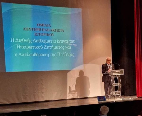Το βράδυ της ίδιας μέρας, στο Πολιτιστικό Κέντρο του Δήμου Πρέβεζας πραγματοποιήθηκε η κεντρική εκδήλωση με ομιλητή τον ιστορικό, φιλόλογο και συγγραφέα Λευτέρη Παπακώστα, ο οποίος ανέδειξε τις διεθνείς διπλωματικές ενέργειες για την επίλυση του Ηπειρωτικού ζητήματος συνθέτοντας παράλληλα το παζλ που οδήγησε στην απελευθέρωση της Πρέβεζας και την ενσωμάτωσή της στον Εθνικό κορμό.