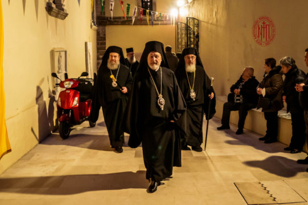Πλήθος φιλευσεβών κατοίκων της έδρας της Ιεράς Μητρόπολης Νικοπόλεως και Πρεβέζης ως και προσκυνητών απ’ όλη την Ήπειρο, συνέρρευσε το απόγευμα της Παρασκευής 9 Φεβρουαρίου 2024 στον ομώνυμο πανηγυρίζοντα Ιερό Μητροπολιτικό Ναό του Αγίου Ιερομάρτυρος Χαραλάμπους του Θαυματουργού, όπου τελέσθηκε ο Μέγας τρισαρχιερατικός Εσπερινός, στον οποίο χοροστάτησε ο Θεοφιλέστατος Επίσκοπος Αμορίου κ. Νικηφόρος, πλαισιούμενος από τους Σεβασμιωτάτους Μητροπολίτες Ιερισσού, Αγίου Όρους και Αρδαμερίου κ. Θεοκλήτου, του οικείου Ποιμενάρχου Μητροπολίτη Νικοπόλεως και Πρεβέζης κ. Χρυσοστόμου και πολλών Κληρικών της Ιεράς Μητροπόλεως Νικοπόλεως και Πρεβέζης και γειτονικών Ιερών Μητροπόλεων.