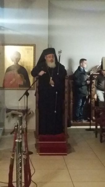 Στη συνέχεια αναφέρθηκε στον Τίμιο Σταυρό διαβλέποντας σε Αυτόν αυτό που μας αποκαλύπτει, δηλαδή τη θυσία του Κυρίου για να εξαγοράσει την αμαρτία του ανθρώπου, ώστε να έλθει η χάρη και σε μας και να άρουμε τον δικό μας Σταυρό, που δεν είναι άλλος από τον κόπο, την προσπάθεια να εναρμονισθούμε με το θέλημα του Κυρίου.
