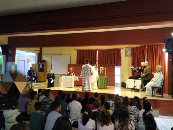 Ο Μητροπολίτης Νικοπόλεως και Πρεβέζης κ. Χρυσόστομος είχε τη χαρά να τελέσει Θεία Λειτουργία για τους μαθητές του 6ου Δημοτικού Σχολείου Πρέβεζας στο μικρό αμφιθέατρο του Σχολείου. Κατά τη διάρκεια της Λειτουργίας ο Σεβασμιώτατος με απλά λόγια εξήγησε στους μικρούς μαθητές τα τελούμενα, διακόπτοντας σε συγκεκριμένα σημεία τη Θεία Λειτουργία προκειμένου να τα κατανοήσουν, κατά το δυνατόν, και να συμμετέχουν σε αυτά.