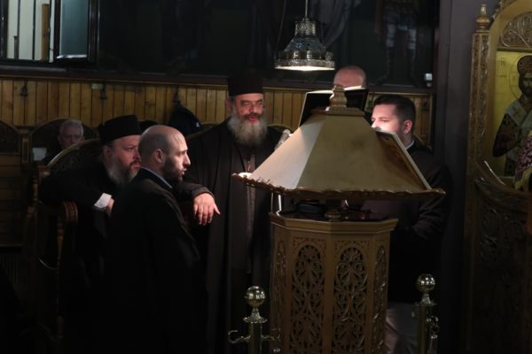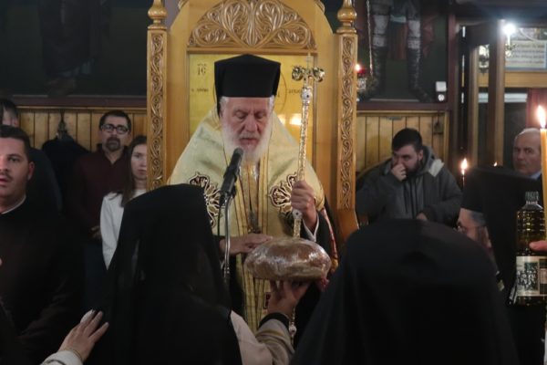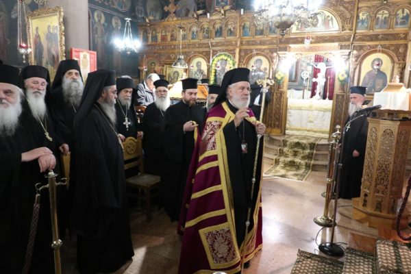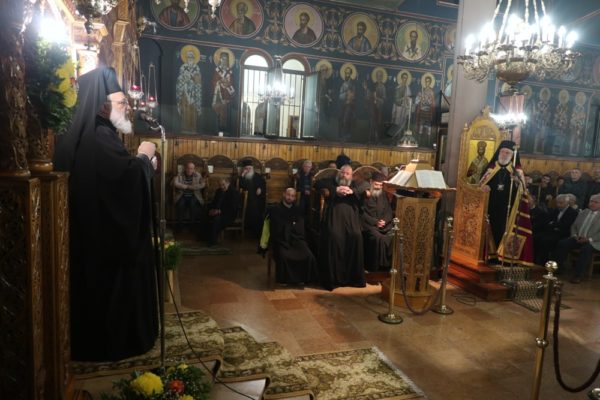 Προ του πέρατος του Εσπερινού ο Σεβασμιώτατος κ. Χρυσόστομος ευχαρίστησε για την παρουσία τους τους Αρχιερείς, τον Κλήρο και το Λαό, που προσήλθε αθρόος να ευχηθεί στον εορτάζοντα πνευματικό πατέρα του.