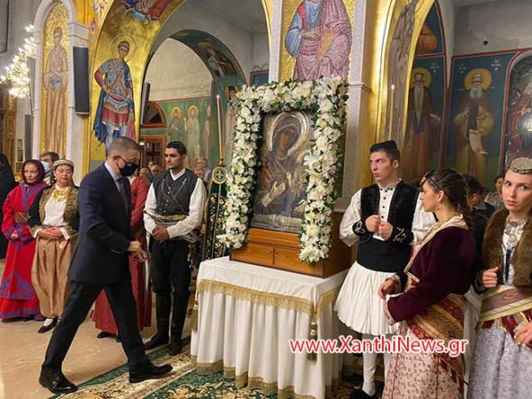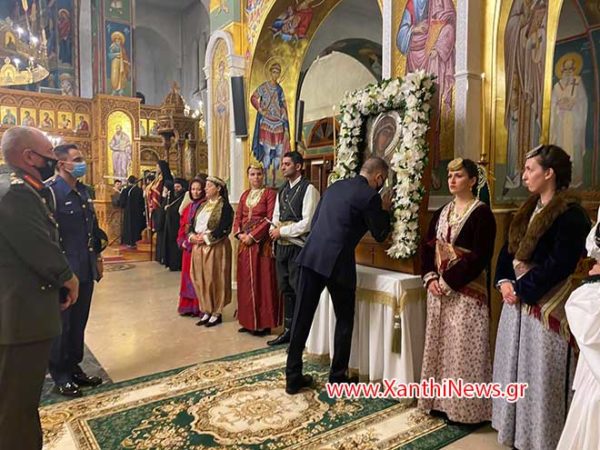 Στα πλαίσια του εορτασμού των 101 χρόνων Ελευθερίων της Ξάνθης πραγματοποιήθηκε υποδοχή της ιερής εικόνας της Παναγίας Αρχαγγελιώτισσσας στον ιερό Καθεδρικό Ναό της του Θεού Σοφίας πριν τον Πανηγυρικό Εσπερινό που χοροστάτησε ο Σεβασμιώτατος Μητροπολίτης Ιερισσού, Αγίου Όρους και Αρδαμερίου κ. Θεόκλητος, συνχοροστατούντων του Μητροπολίτου Ξάνθης κ Παντελεήμονος και του Μητροπολίτου Μαρωνείας και Κομοτηνής κ. Παντελεήμονος.