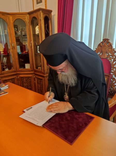 24/10/2024 24/10/2024 Την Πέμπτη 24 Οκτωβρίου 2024 και ώρα 12η μεσημβρινή στο Μητροπολιτικο Μέγαρο της Ξάνθης ο Επίσκοπος Πολυστύλου κ. Σωφρόνιος έδωσε την νενομισμενη Διαβεβαίωση ενώπιον του Σεβασμιωτάτου Μητροπολίτου Ξάνθης και Περιθεωρίου κ. Παντελεήμονος. Η τελετή ολοκληρώθηκε με την υπογραφή του σχετικού Πρακτικού.