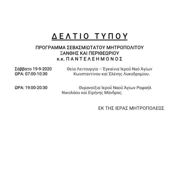 Επίσης, το απόγευμα της ίδιας ημέρας στις 7 ο Σεβασμιώτατος θα κάνει τα θυρανοίξια του Ιερού Ναού Αγίων Ραφαήλ, Νικολάου και Ειρήνης Μάνδρας.