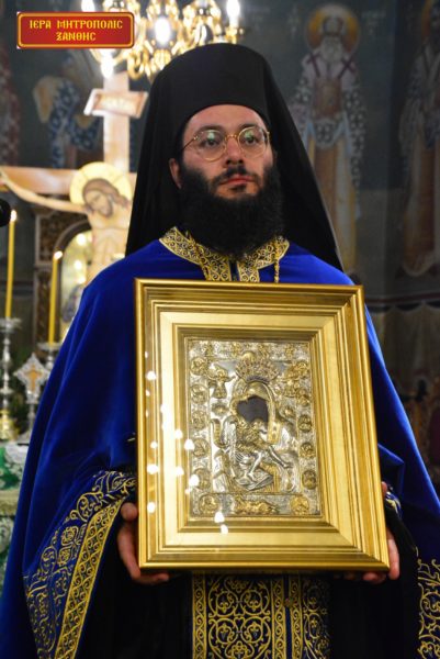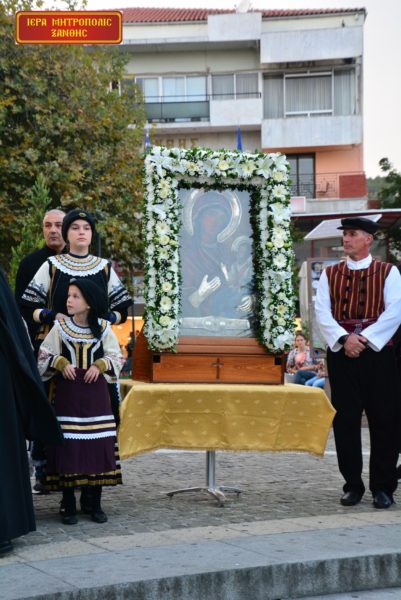 Η Εικόνα της Παναγίας μεταφέρθηκε με στρατιωτικό όχημα από το μοναστήρι παρουσία του Ηγούμενου Αρχιμανδρίτη π. Ανθίμου Κωσταράκη. Την Ιερά Εικόνα υποδέχθηκε ο Σεβασμιώτατος Μητροπολίτης Ξάνθης και Περιθεωρίου κ. Παντελεήμων μαζί με τους προσκεκλημένους Μητροπολίτες Σιδηροκάστρου κ. Μακάριο και Φιλίππων, Νεαπόλεως και Θάσου κ. Στέφανο, Δράμας κ. Δωρόθεο.