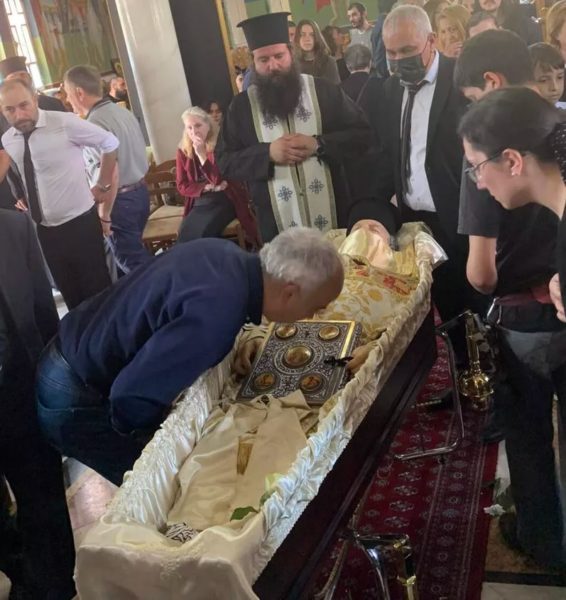 Την ημέρα της κηδείας,  το πρωί τελέστηκε Θεία Λειτουργία κι έπειτα εψάλη η εξόδιος, παρουσία του Σεβασμιωτάτου Μητροπολίτη Ξάνθης κ. Παντελεήμονος και του Σεβασμιωτάτου Μητροπολίτη Μαρωνείας και Κομοτηνής κ. Παντελεήμονος.