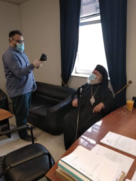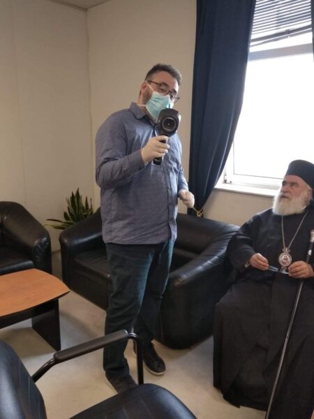 Αφού ενημερώθηκε για την κατάσταση του νοσηλευτικού προσωπικού παρέδωσε στην Διοικητή του Νοσοκομείου κ. Έλενα Ραφαέλα μία θερμική κάμερα για τις ανάγκες του Νοσοκομείου.