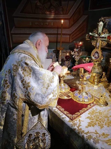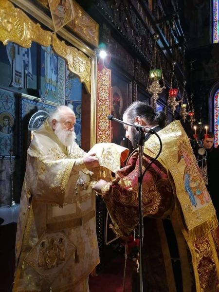 Τον Σεβασμιώτατο πλαισίωσαν ο προϊστάμενος του ιερού ναού π. Ιωάννης Ιωαννίδης και ο αρχιδιάκονος της Μητρόπολης π. Νεκτάριος.