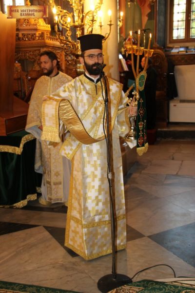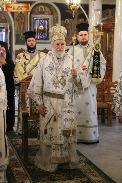 Της πανηγυρικής θείας λειτουργίας προεξήρχε ο Σεβασμιώτατος Μητροπολίτης Μετρών και Αθύρων κ. Δημήτριος πλαισιούμενος από τον οικείο Μητροπολίτη Ξάνθης και Περιθεωρίου κ. Παντελεήμων και τον Θεοφιλέστατο Επίσκοπο Αμορίου και Καθηγούμενο της Ιεράς Σταυροπηγιακής και Πατριαρχικής Μονής Βλατάδων κ. Νικηφόρο.
